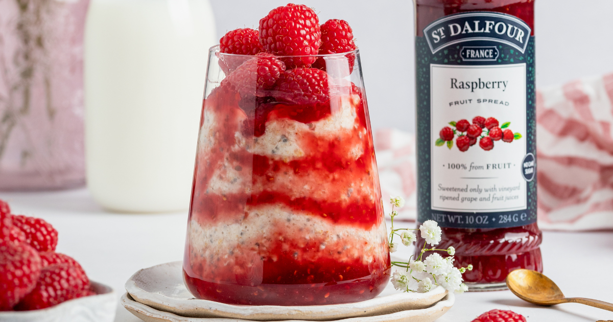 Nauti kermaisen hedelmäisestä herkusta, jota täydentää St. Dalfourin vadelmahillo. Tässä reseptissä yhdistyvät luonnollisen hillon runsas maku ja chia-siementen ravinteikkuus – täydellinen lisä täydentämään kahvilavitriinin valikoimaa tai aamiaismenua.